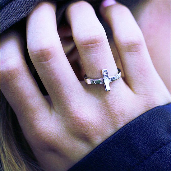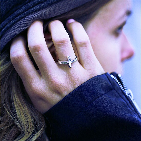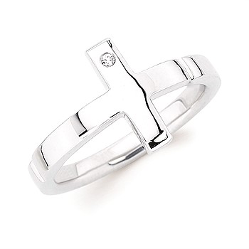 Diva Diamonds® Sideways Cross Ring In Sterling Silver With .01 Ct. Diamond